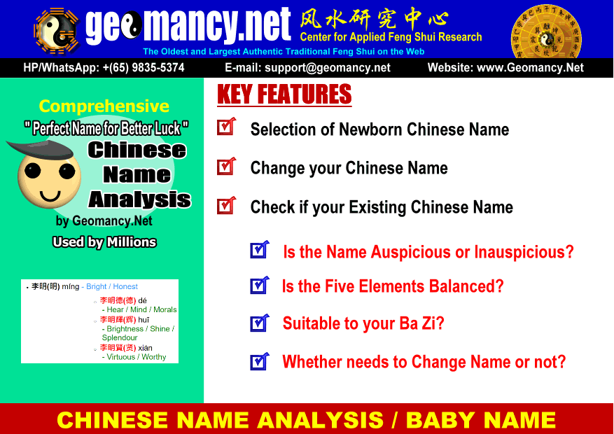 Our Chinese Name Service can help check your Existing Name, Change Name and Selection of Newborn Baby Chinese Name