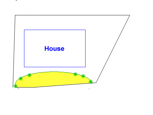 4. First of all, this may not be applicable to most houses as it implies e.g. planting trees in a semi-arch along the `yellow' boundary of the house. Impratical as it may sound (because we need to take care of the garage e.t.c) the is a Shapes and Form method of `compensating' for a narrow front.